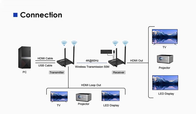انتقال بیسیم 4K@60Hz UHD برای 50 متر، قابلیت عبور از دیوار
