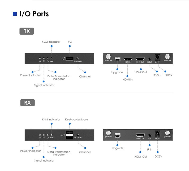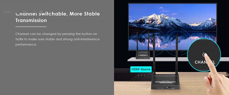 در اکستندر بیسیم HDMI لنکنگ LENKENG LKV699KVM کانال را میتوان با فشار دادن دکمه Tx/Rx تغییر داد تا از عملکرد ضد تداخل پایدار و قوی اطمینان حاصل شود. اکستندر بیسیم HDMI لنکنگ LENKENG LKV699KVM از رزولوشن صفحه نمایشهای Ultra مانند 1920x1200, 2560x1440, 2560x1600 پشتیبانی میکند.