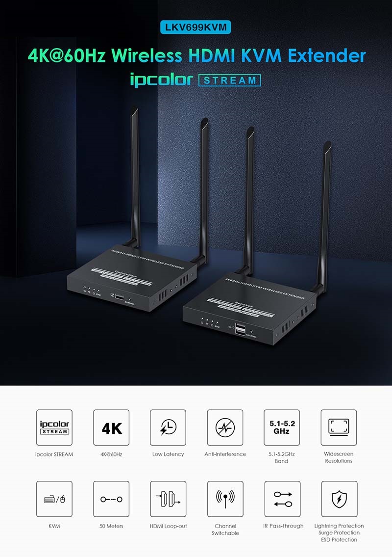 ipcolor STREAM یک فناوری فشردهسازی جدید در اکستندر بیسیم HDMI لنکنگ LENKENG LKV699KVM است که با به حداکثر رساندن کاهش از دست دادن دادهها در طول فرآیند انتقال با تأخیر کم و ضد تداخل قوی، کیفیت سیگنالهای اصلی را تا حد امکان معتبر حفظ میکند.