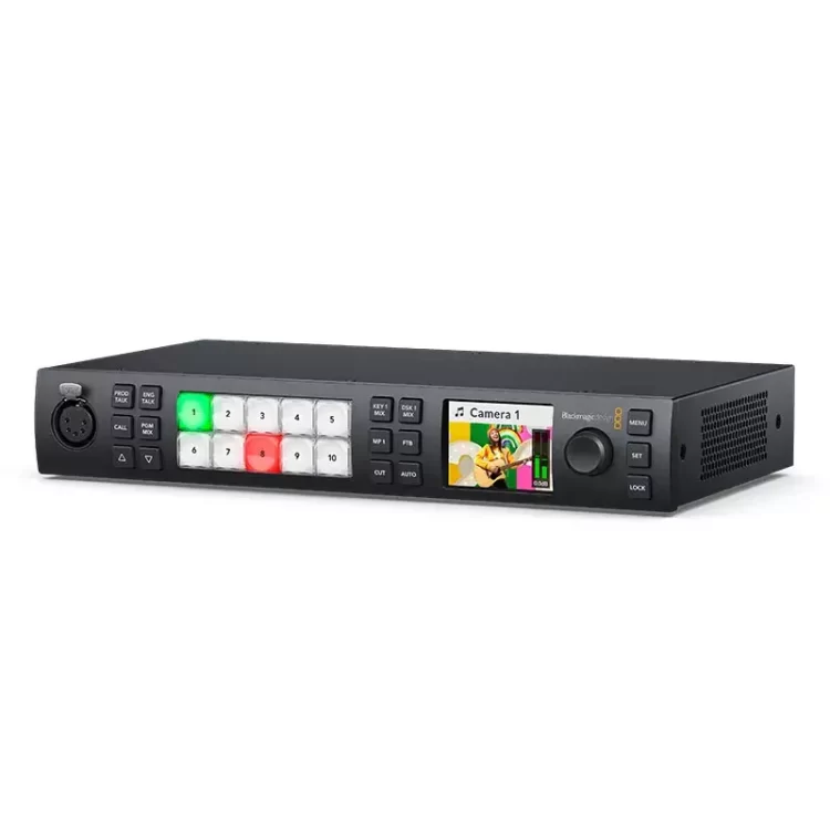 میکسر تصویر Blackmagic ATEM 1 M/E Constellation HD با ارائه قابلیتهای سوئیچ حرفهای، کروماکی پیشرفته، میکس صدا، مالتی ویو، استریمینگ و… خلق هر ایده را ممکن ساخته است. ده کانال ورودی قابل استفاده و پشتیبانی از تمام رزولوشنهای رایج پایینتر از 1080p60 (Full HD) (ویژگی مولتی فرمت)، در کنار استفاده از کیفیت صدای عالی، تصویربرداری و کارگردانی تمام پروژه های برنامهسازی، فیلمسازی، مصاحبه، کلاس مجازی و… را به بالاترین سطح خود میرساند.