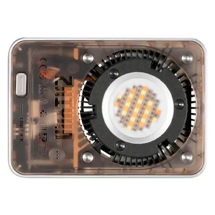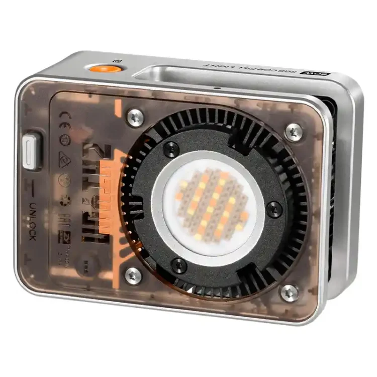 نور ثابت Zhiyun Molus X60 RGB با ظاهری مینیمالیست و ابعادی کوچک، قدرت 60 واتی را در خود جای داده است. این ویدئو لایت با وزنی در حدود 319 گرم و ضخامت 56 میلیمتر، یکی از سبکترین نورهای حرفهای بازار به شمار میرود. بدنه فلزی مقاوم آن علاوه بر دوام بالا، ظاهری مدرن و حرفهای دارد که با هر نوع تجهیزات فیلمبرداری هماهنگ میشود.