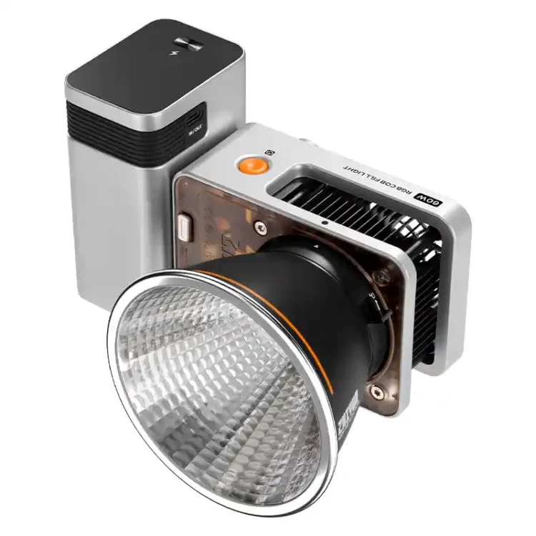 یکی از مزیتهای برجسته نور ثابت Zhiyun Molus X60 RGB، انعطاف در تأمین برق است. آداپتور برق مستقیم DC اولین گزینه شماست. برخلاف مدلهای قدیمی که به باتریهای سنگین V-Mount نیاز دارند، این نور از فناوری PD Charging پشتیبانی میکند که امکان استفاده از پاوربانکهای قدرتمند را فراهم میآورد. علاوه بر این، باتری گریپ اختصاصی Zhiyun گزینهای ایدهآل برای استفاده بیسیم در پروژههای خارجی محسوب میشود.