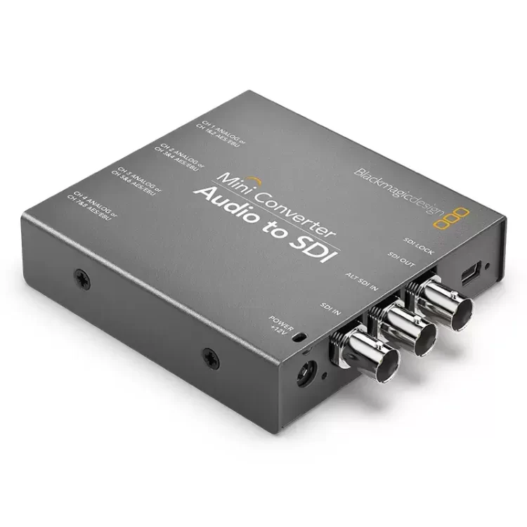 یکی از لزوماتی که گاهی حین تصویربرداری و تدوین نیاز میشود، اضافه کردن و ادغام چندین ورودی صوتی با یک منبع ویدئویی است. کمپانی Blackmagic با خلق کانورتر Blackmagic Mini Converter Audio to SDI از سری خانواده مینی کانورترها، راه حلی حرفهای برای این مسئله ارائه داده است. به وسیله این مبدل صدا میتوانید چهار ورودی آنالوگ یا هشت منبع صوتی دیجیتال را به یک ورودی SDI متصل کنید و یک تصویر با ویدئو و صداهای ورودی از طریق درگاه خروجی 3G-SDI دریافت کنید. این کانورتر بلک مجیک درواقع برعکس وظیفه مبدل تصویر Blackmagic Mini Converter SDI to Audio را انجام میدهد و درصورت نیاز به جداسازی صدا از ویدئو، باید از آن کانورتر استفاده کنید.