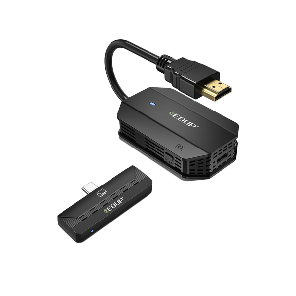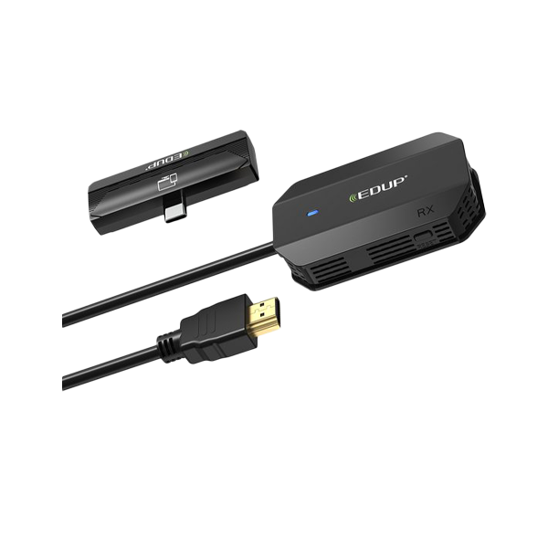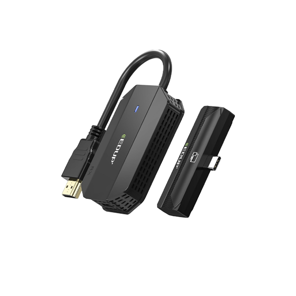 EDUP Wireless HDMI Transmitter and Receiver، تجربهای نو از انتقال تصویر را تجربه کنید! دانگل بیسیم HDMI مدل EDUP Wireless HDMl Transmitter and Receiver با پشتیبانی از رزولوشن 4K و خروجی 1080P، تصاویر شفاف و باکیفیت را بدون نیاز به سیمکشی به نمایشگر منتقل میکند. دانگل بیسیم TYPE-C to HDMI مدل EDUP Wireless HDMl Transmitter and Receiver با برد چشمگیر 164 فوت (50 متر) و پشتیبانی از دو باند 2.4G و 5G، اتصال پایدار و بدون تأخیر را حتی در محیطهای بزرگ تضمین میکند. طراحی Plug and Play در دانگل بیسیم HDMI مدل EDUP Wireless HDMl Transmitter and Receiver باعث میشود بدون نیاز به نصب نرمافزار، تنها با اتصال سریع، آماده استفاده باشد. EDUP Wireless HDMI Transmitter and Receiver همچنین با پشتیبانی از درگاه USB-C 3.1 (DP-Alt Mode)، میتوانید گوشی هوشمند یا لپتاپ خود را به آسانی به تلویزیون یا پروژکتور متصل کنید و از تماشای محتوای دلخواهتان لذت ببرید.