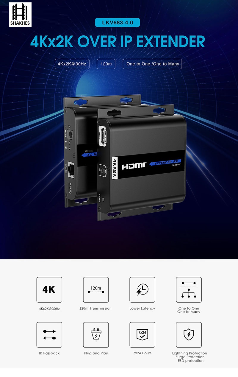 اکستندر تصویر HDMI برند لنکنگ مدل LKV683-4.0 دارای قابلیت طولانی ترین فاصله انتقال است که می تواند به 120 متر برسد.