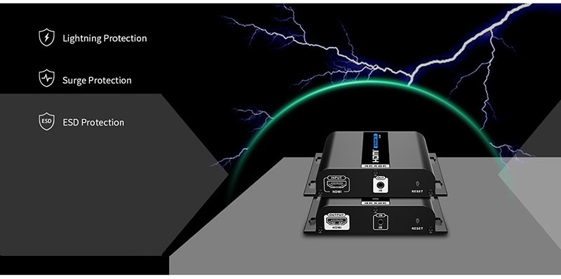 اکستندر HDMI لنکنگ مدل LKV683-4.0 دارای تراشههایی است که حفاظت های متعددی مانند حفاظت ESD، حفاظت در برابر امواج (surge)، حفاظت در برابر صاعقه (lightning) برای ایمن تر و قابل اطمینان تر کردن محصول دارا میباشد. اینگونه شما با خیال راحت کار خود را انجام میدهید بدون آنکه در انتقال مشکلی پیش آید.