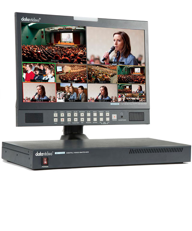 ( میکسر رکمونت ) Datavideo SE-1200MU با 6 ورودی، یک سوئیچر ویدیوی دیجیتال HD کوچک ، قابل حمل و مقرون به صرفه است که دارای ویژگی های حرفه ای با کاربردی آسان است و قابل کنترل از طریق کامپیوتر می باشد.